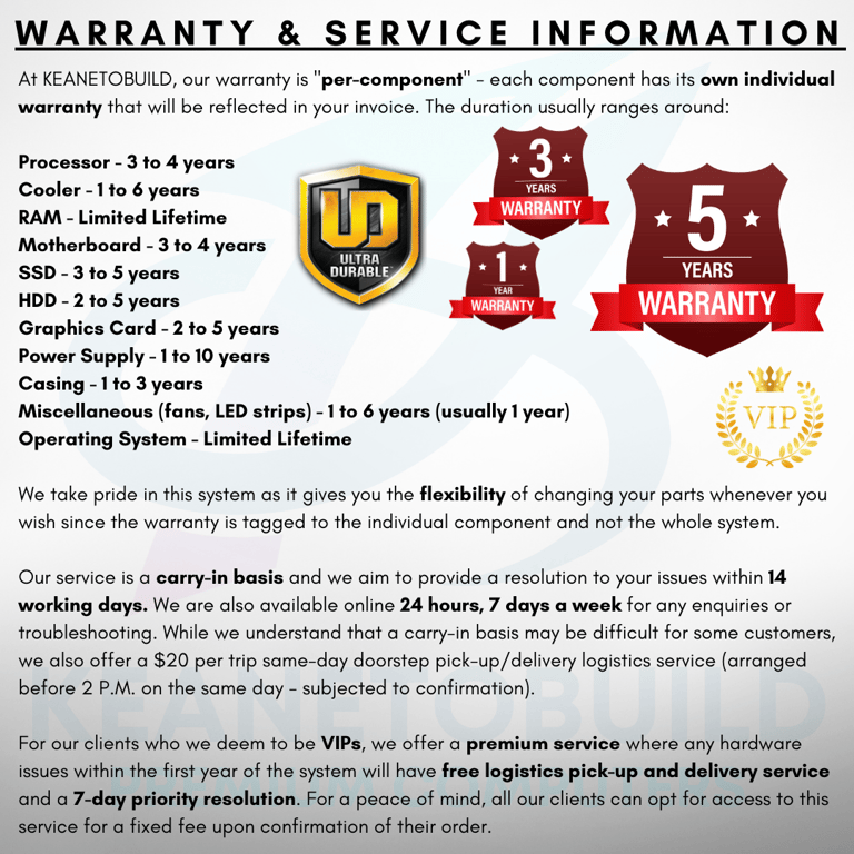 For our desktops, we operate on a "per-component" warranty basis, thereby providing the flexibility to change your PC hardware whenever you wish.